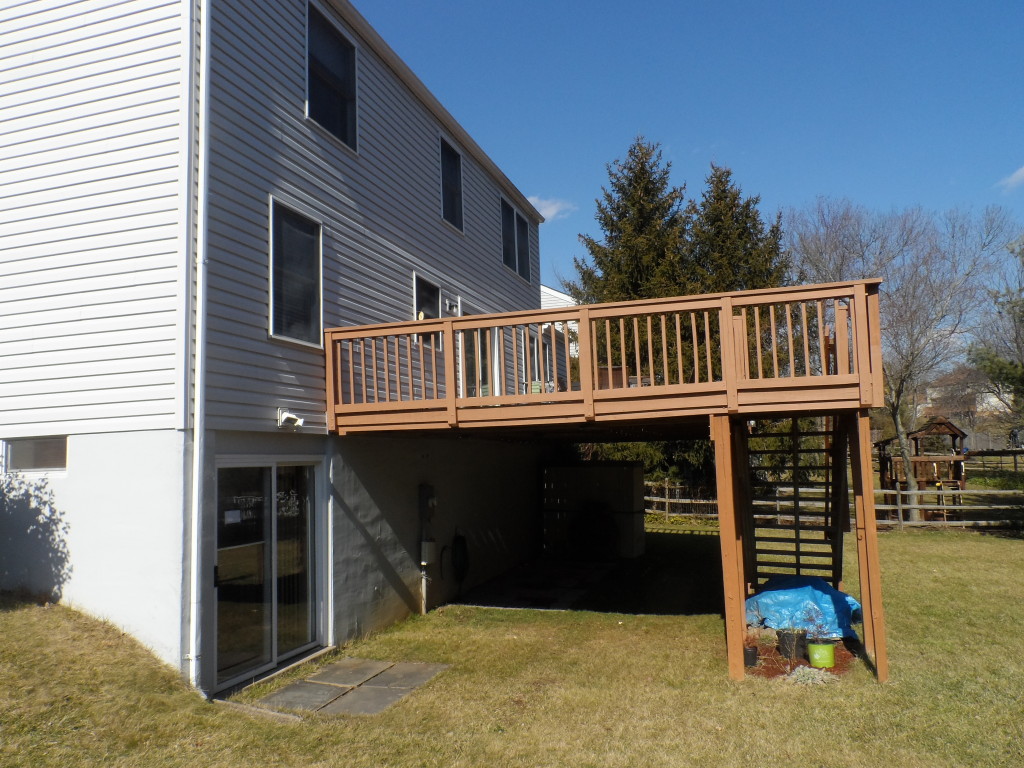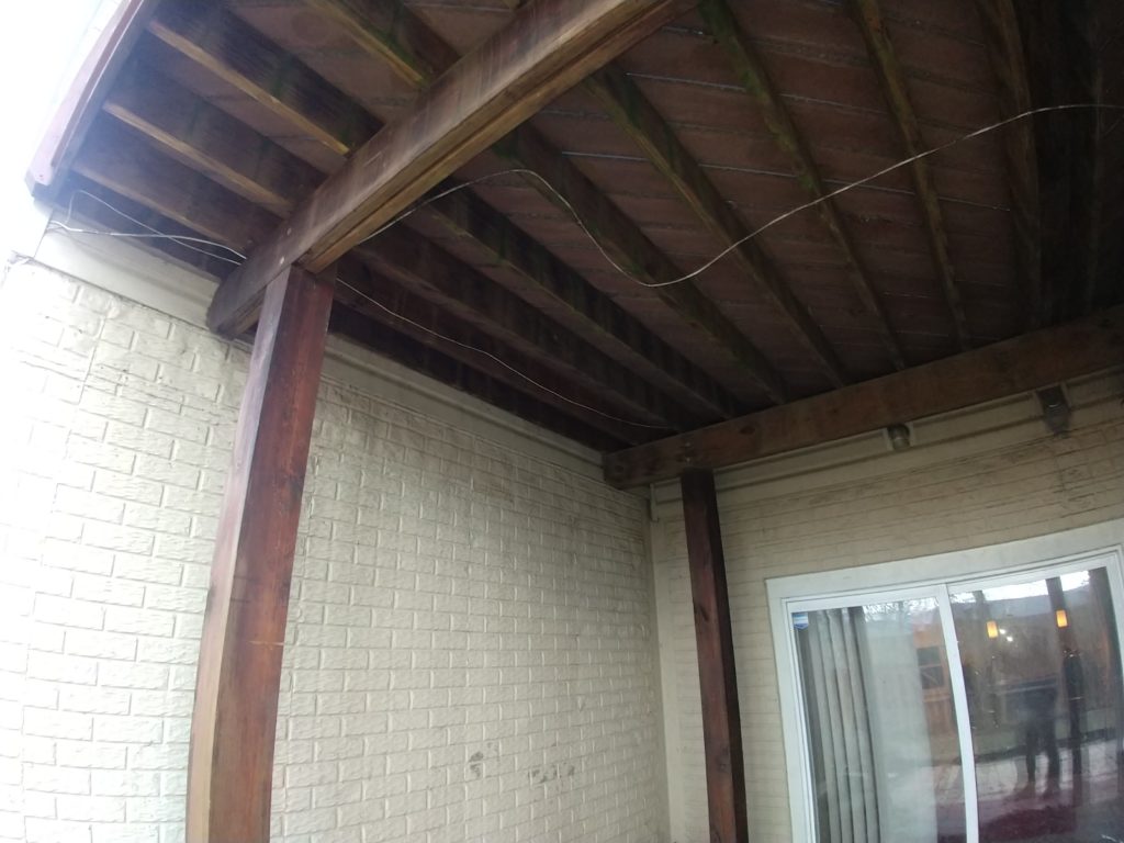Let’s dig deeper. Most decks are attached to the house at one end, and supported by a beam at the other end. The house-side of the deck is a concern. In the photograph below, the deck is attached with a ledger board, which relies on hardware connectors (such as bolts or screws) which can pull-out and fail without warning. If you read the code for how to install a deck ledger, you’d realize it would be easier to simultaneously recite Shakespeare, play chess, and open a pickle jar than correctly install a house ledger. Weighing the difficulty of installation and susceptibility to water damage, together with the questionable competence of many deck contractors, any inspector would be well-advised to tell you to make improvements.